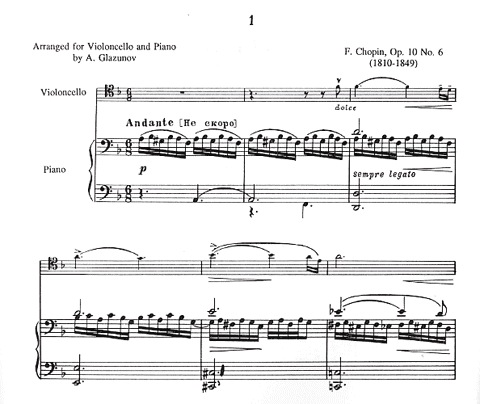 Chopin, Frederic (Glazunov): Two Etudes Op.10 No.6j/Op.25 No.7 (cello & piano)