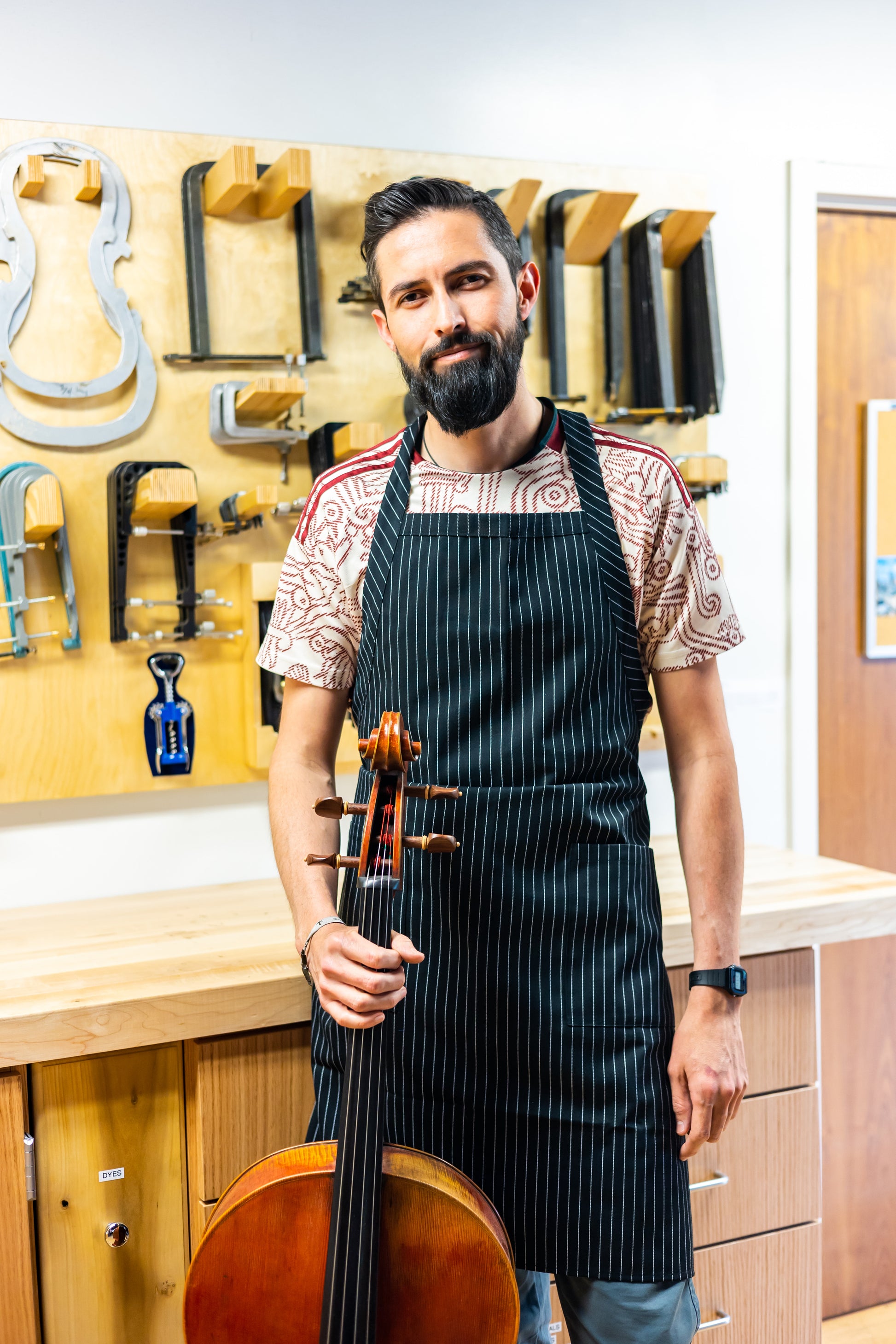 Witnessing the pinnacle of violin making firsthand ignited a profound desire in Jaime to really push his own artistry. This drive ultimately led him to the United States, where he relocated in 2020, starting his U.S. journey by working at a rental shop in Houston. This hands on experience in a busy environment provided a unique foundation before he joined the distinguished workshop at Carriage House Violins in 2022, immersing himself in instrument restoration.