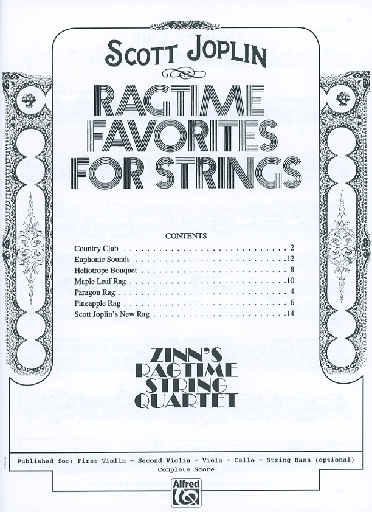 Joplin, Scott (Zinn): Ragtime Favorites for String Quartet (Viola)
