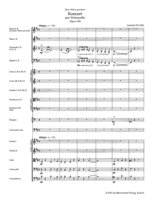Dvorak, Antonin (Del Mar): Cello Concerto in B minor Op. 104 (Study Score) Barenreiter Urtext