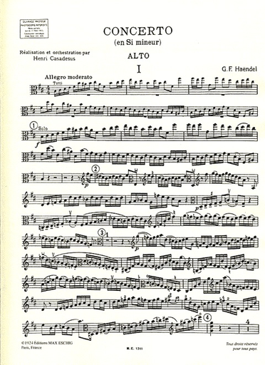 Handel (Haendel) (Casadesus) : Viola Concerto in B minor (viola & piano)