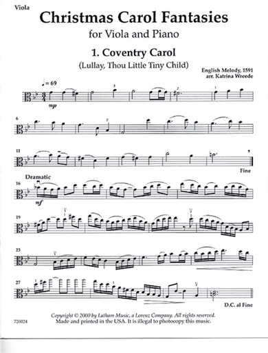 Wreede, Katrina: Christmas Carol Fantasies (viola & piano)