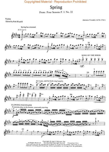 Vivaldi, A. (Klopcic): ''Spring'' - Four Seasons, Op.8 (violin, and piano accompaniment) SCHIRMER